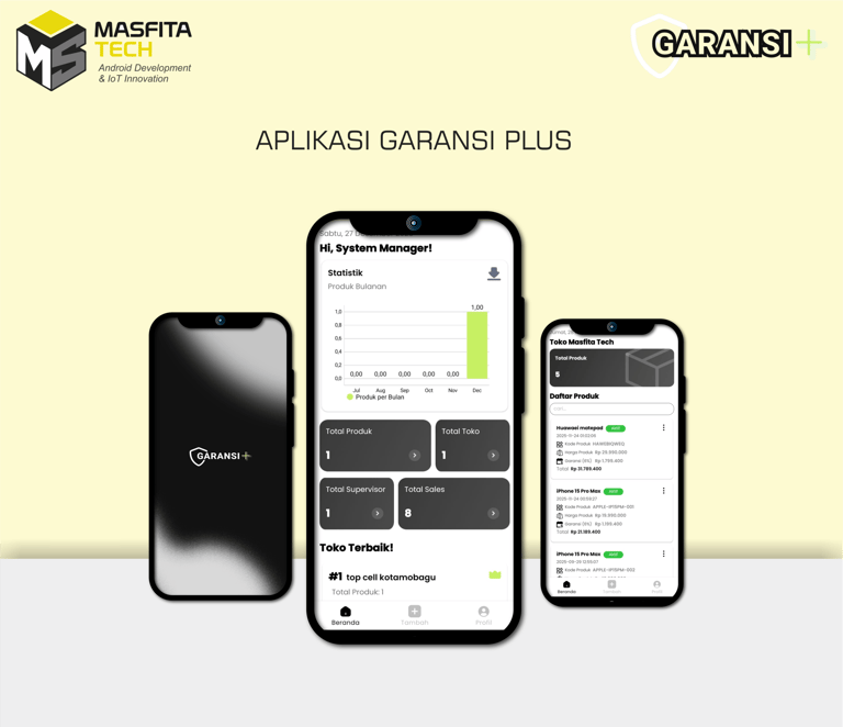 Garansi Plus adalah aplikasi Android yang digunakan untuk mengelola program garansi pembelian barang elektronik secara digital. Aplikasi ini membantu toko, sales, supervisor, hingga manajemen dalam mengatur data customer, masa aktif garansi, serta proses klaim secara terstruktur dan efisien.